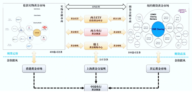 这几个市场,核心市场是伦敦实物金市场,纽约是期货市场,通过这一套运作机制,跟外围市场相联通。